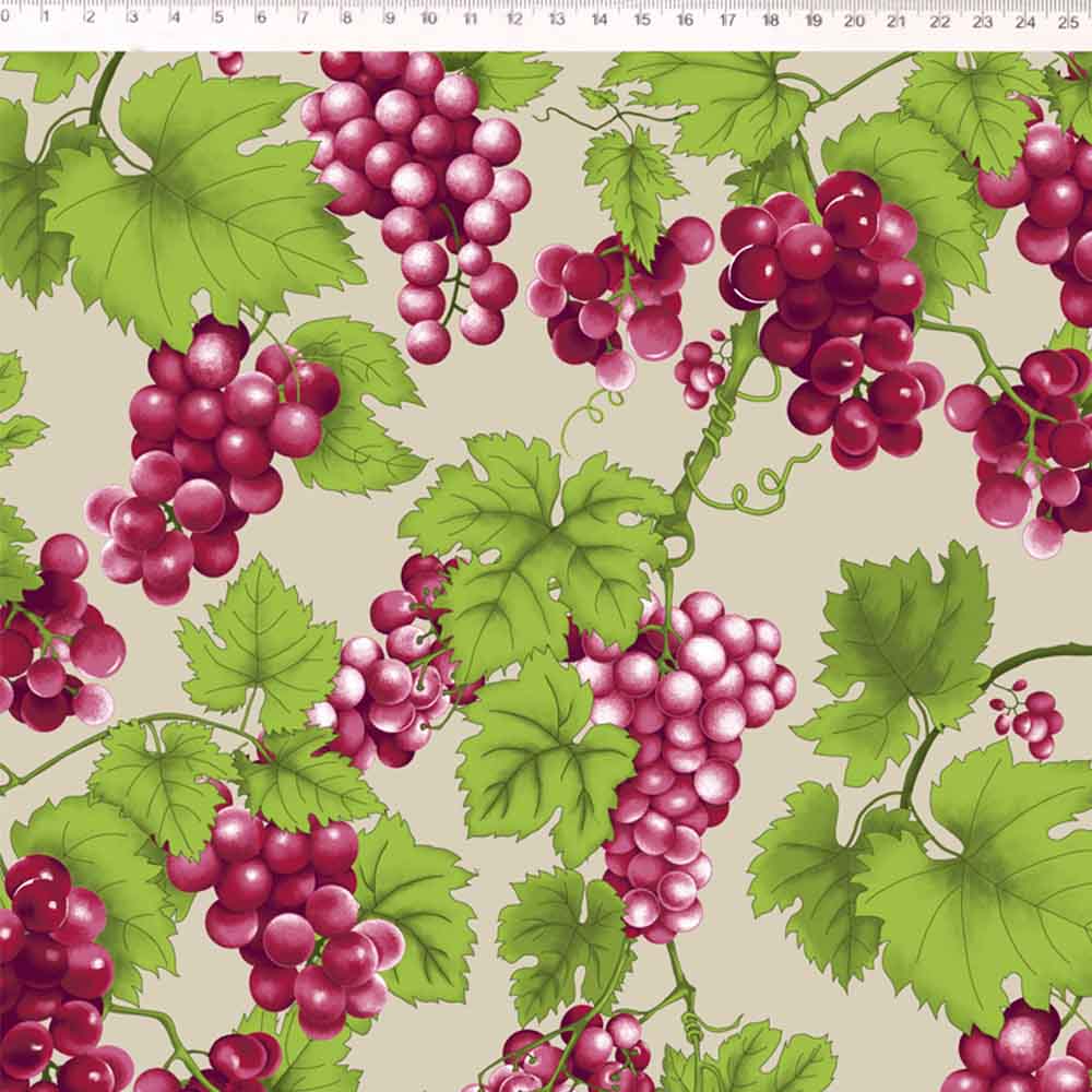 COLEÇÃO FRUITS - SARJA - UVAS E FOLHAS FD BEGE