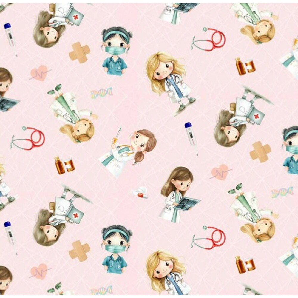 FV26 - TRICOL. COLEÇÃO PROFISSÕES - MÉDICAS FUNDO ROSA - 100% ALGODÃO - A0880-001
