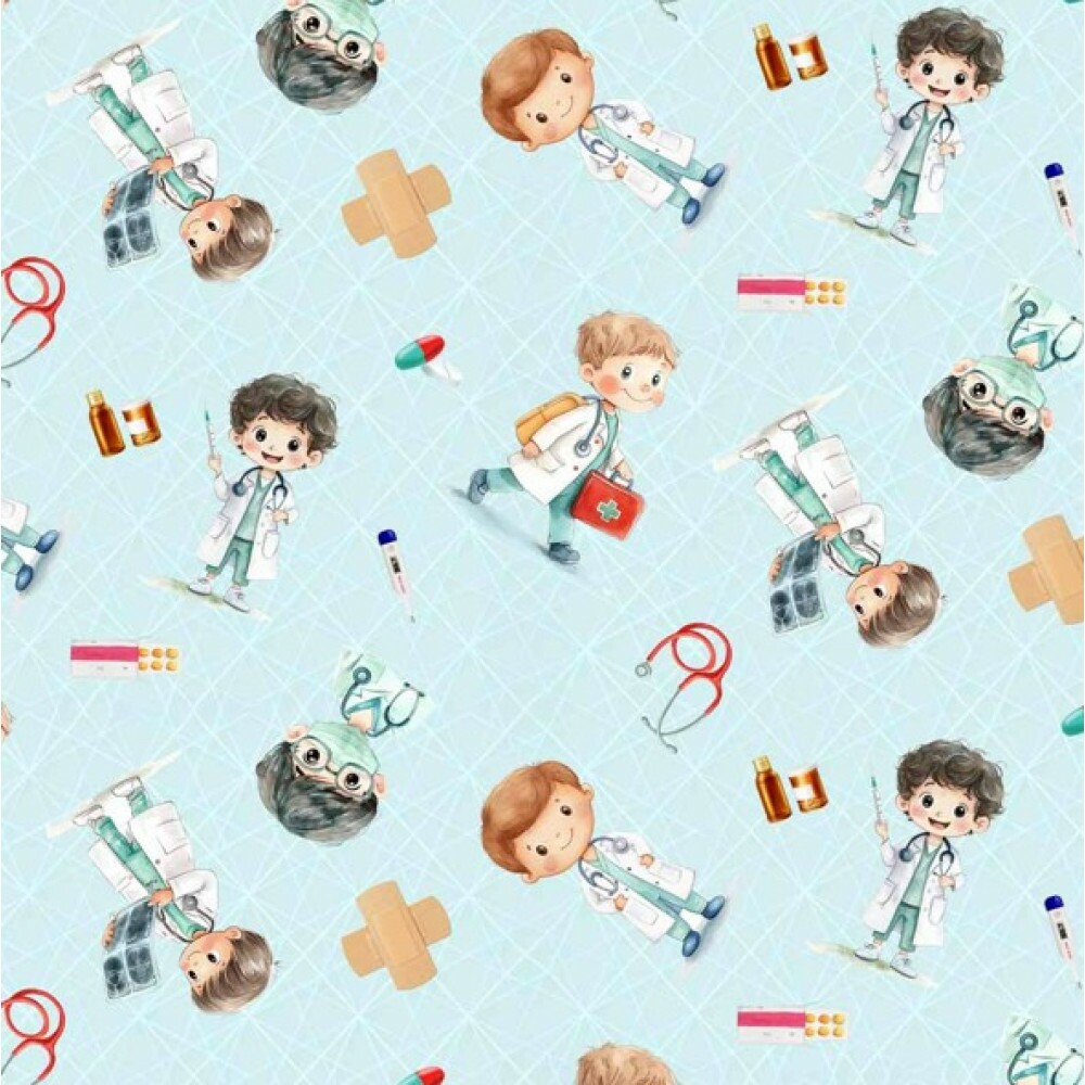FV26 - TRICOL. COLEÇÃO PROFISSÕES - MÉDICOS FUNDO AZUL - 100% ALGODÃO - A0884-001