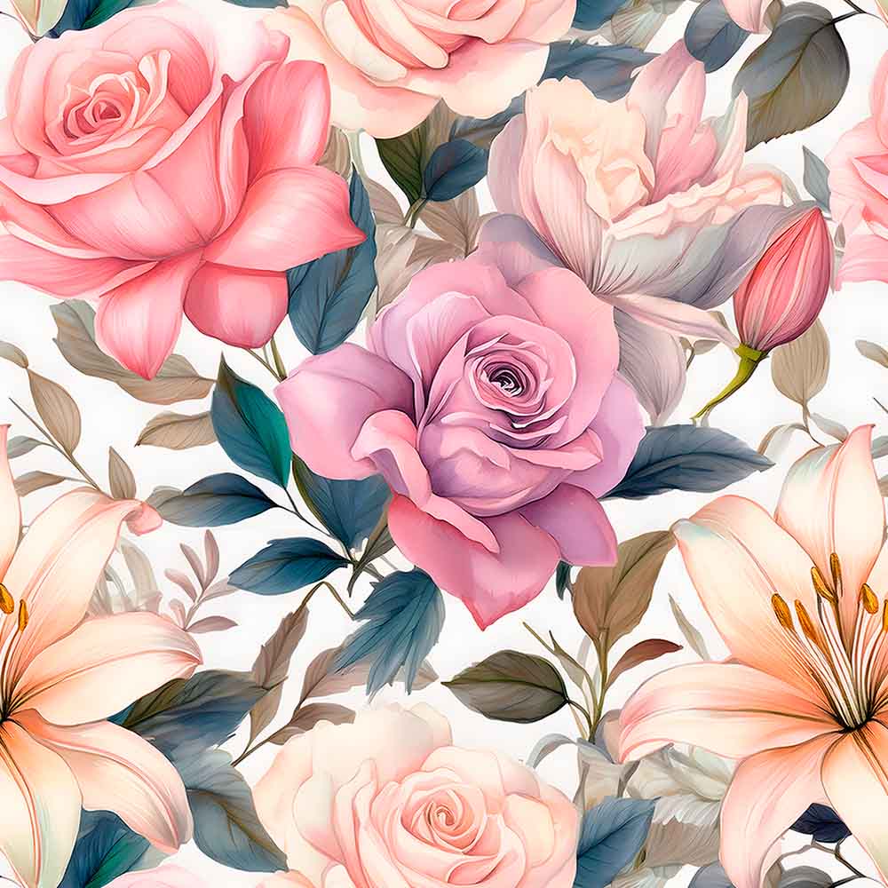 JL25 - TRICOLINE 100% ALGODÃO DIGITAL -COLEÇÃO WATERCOLOR - ROSAS II
