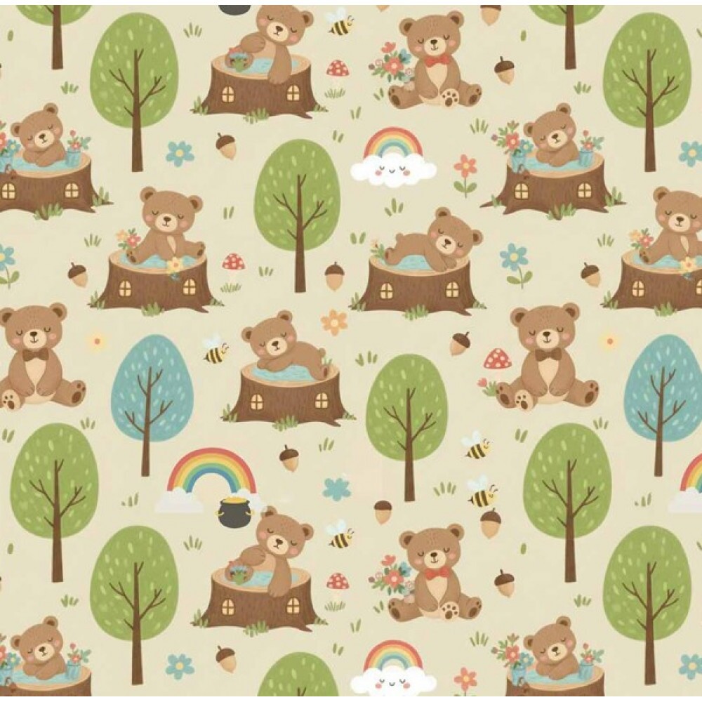 • MI26 - TRICOL. COLEÇÃO FLORESTINHA - URSOS - 100% ALGODÃO A3532-001