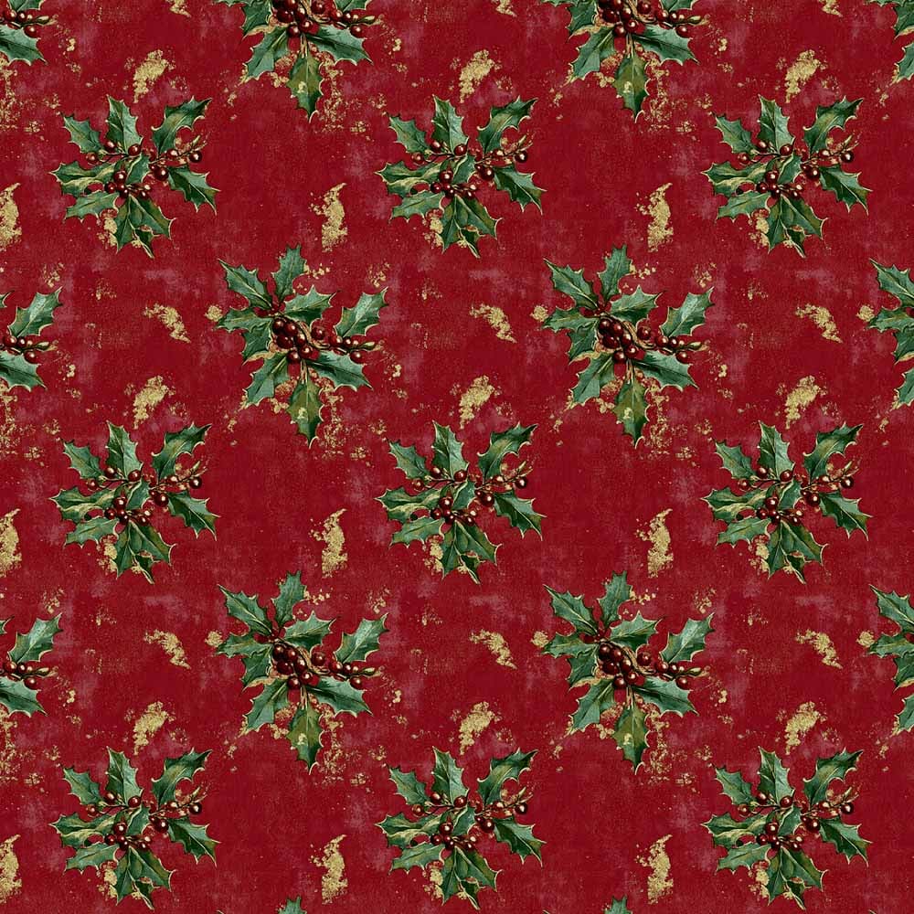 NT26 - TRICOL. COLEÇÃO NATAL CALICOS - AZEVINHA FUNDO VERMELHO - 100% ALGODÃO A4457-001