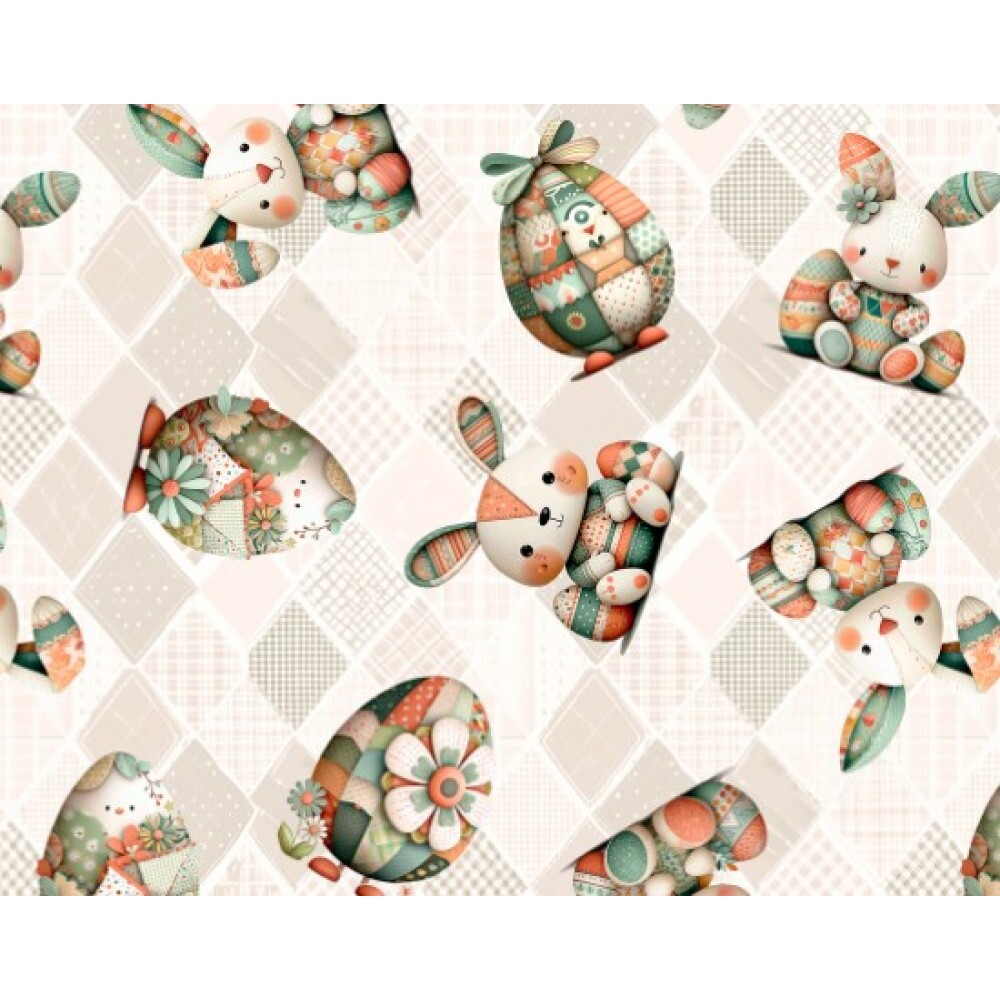 DZ25 - TRICOL. COLEÇÃO PASCOA 2026 - COELHOS E OVOS FUNDO BEGE - 100% ALGODÃO 04971-001