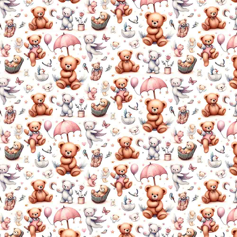 ST25 - TRICOLINE 100% ALGODÃO DIGITAL - LARG 1,50m - URSINHOS- URSOS COM GUARDA-CHUVAS