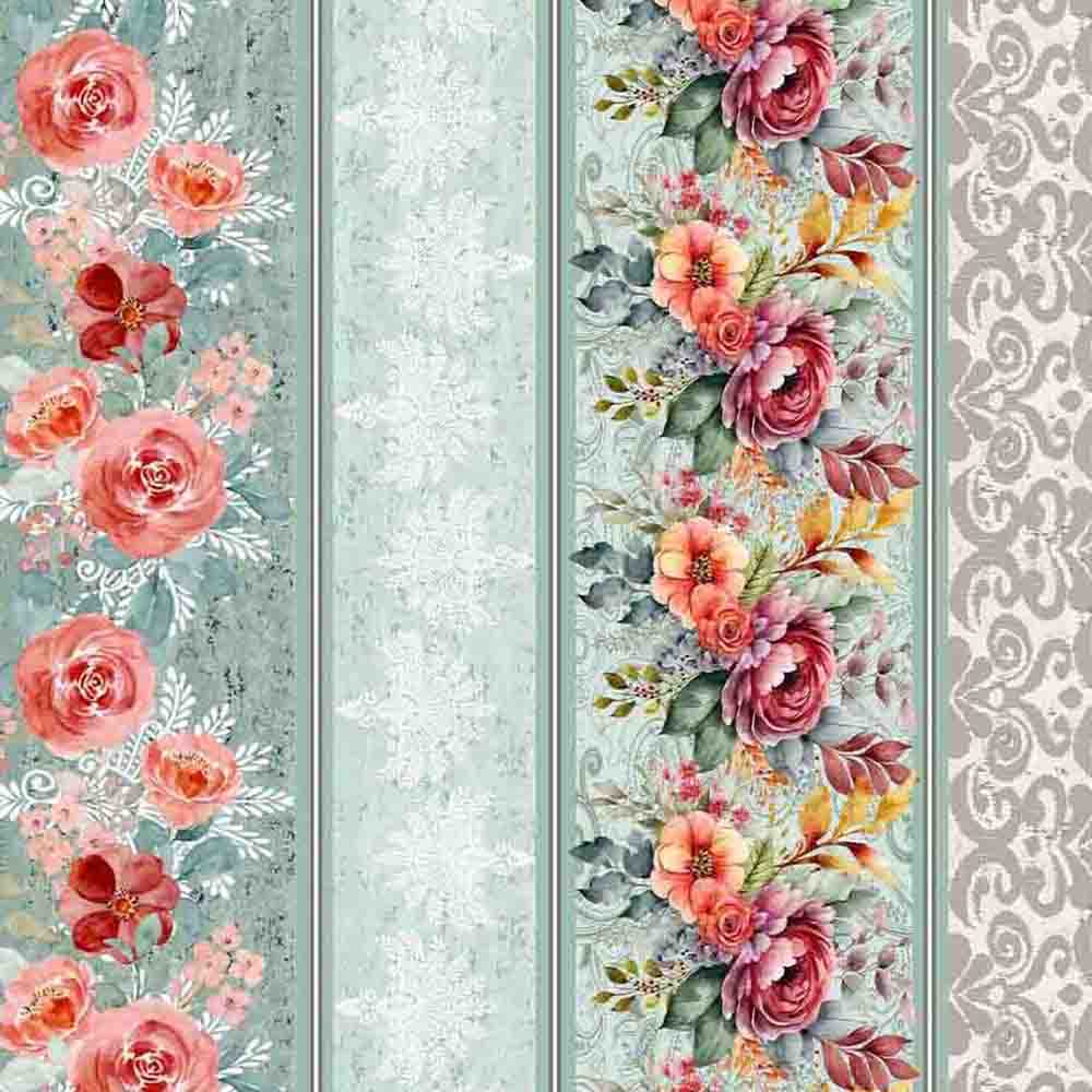 COL/ MAISON CHIC BY SENHORA DOS TECIDOS -TRIC. BARRADO DE FAIXAS - ROSAS - ( 80106 - VAR,01 ) - ( E9668 )