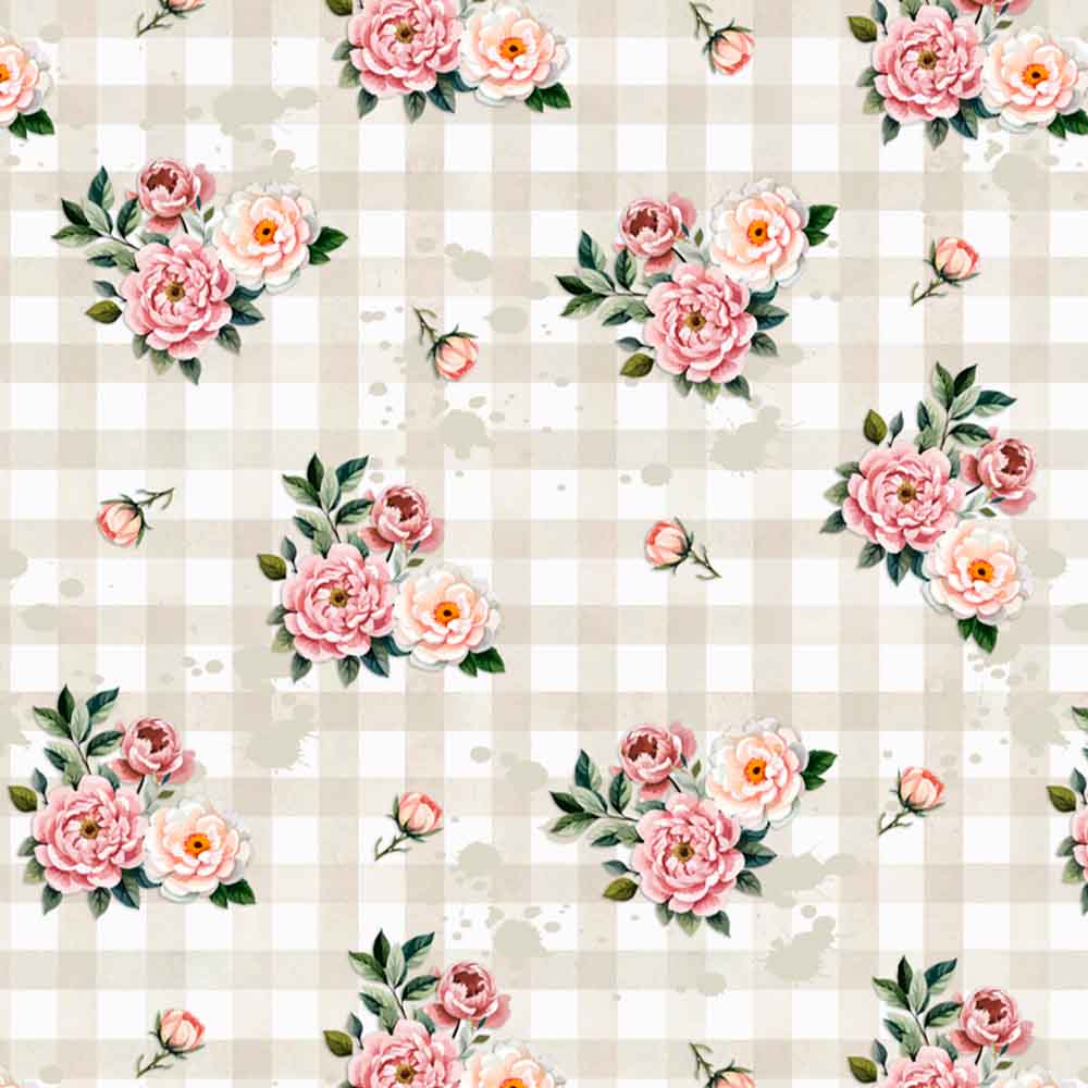 COLEÇÃO FLOWER LOVE POR CRIS POLETTO - XADREZ C/ ROSAS BEGE - ( 84576 - VAR,01 ) - C