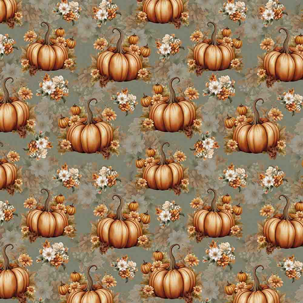 COLEÇÃO ABOBORAS VINTAGE - TRIC EST DIGITAL - LARG 1,50 - ABOBORAS FUNDO CINZA