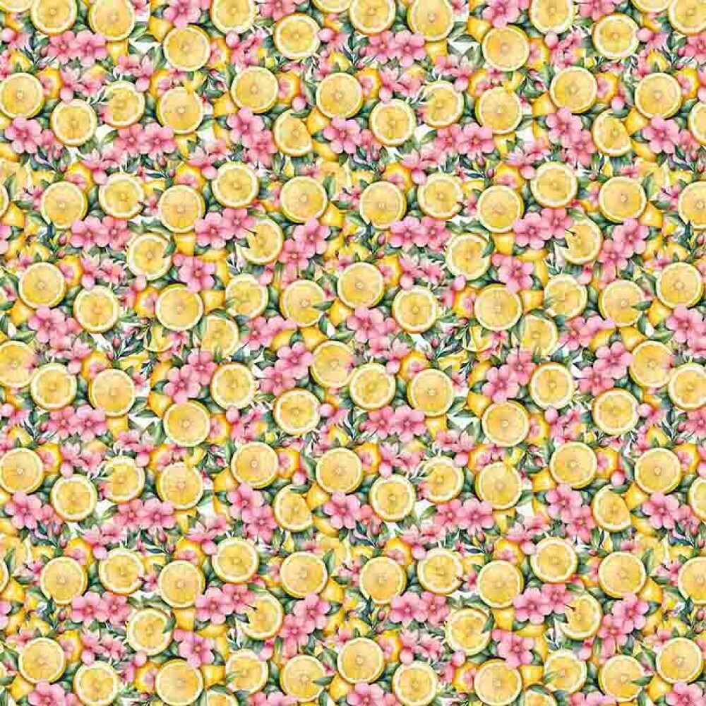 MG25 -TRICOLINE 100% ALGODÃO DIGITAL - PINK LEMONADE - LIMAO E FLORES JUNTOS 98701/001