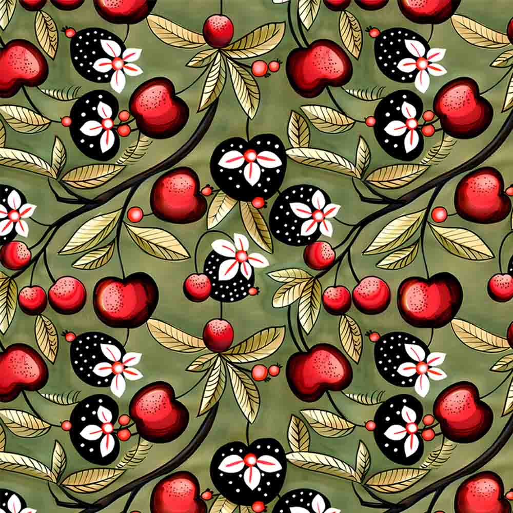 COLEÇÃO FRUTAS COUNTRY - TRIC. EST. DIGITAL - CEREJA FUNDO VERDE - 92116-001