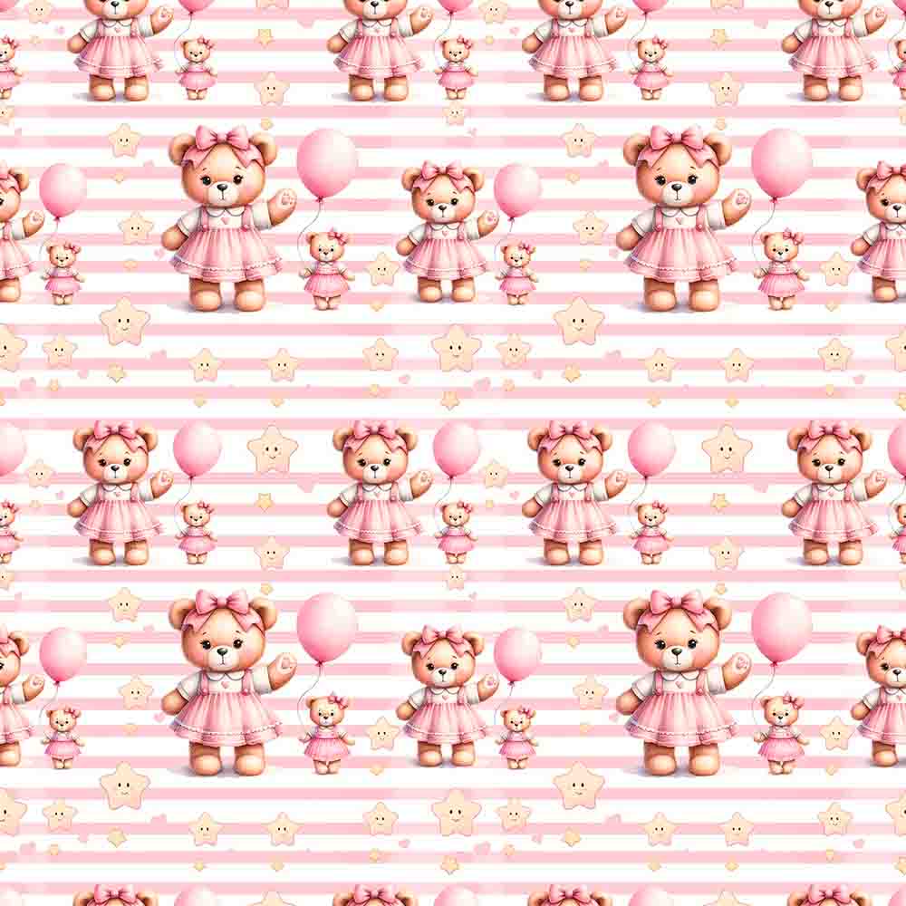 COLEÇÃO CARINHO - TRIC EST DIGITAL - LARG 1,50 - URSOS FUNDO LISTRADO HORIZONTAL ROSA - 92989-001