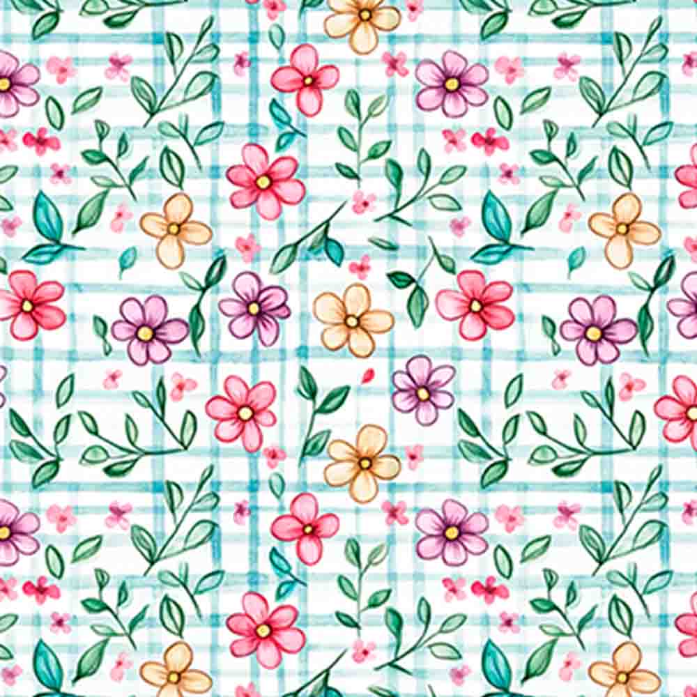 COLEÇÃO CECILE - TRIC EST DIGITAL- LARG 1,50m - FLORES FUNDO XADREZ - 93247-001