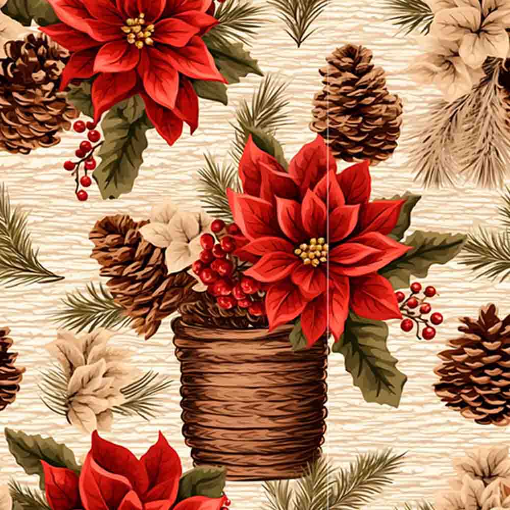 TRICOLINE 100% ALGODÃO DIGITAL - NATAL 2025 - VINTAGE BICO DE PAPAGAIO E VASOS
