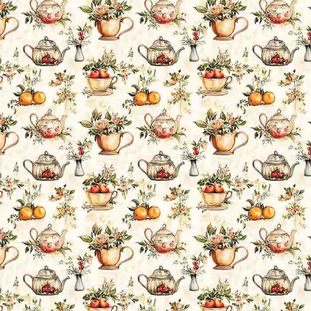 MG25 - TRICOLINE 100% ALGODÃO DIGITAL - COL. VINTAGE KITCHEN - XICARAS E BULES 99619/001