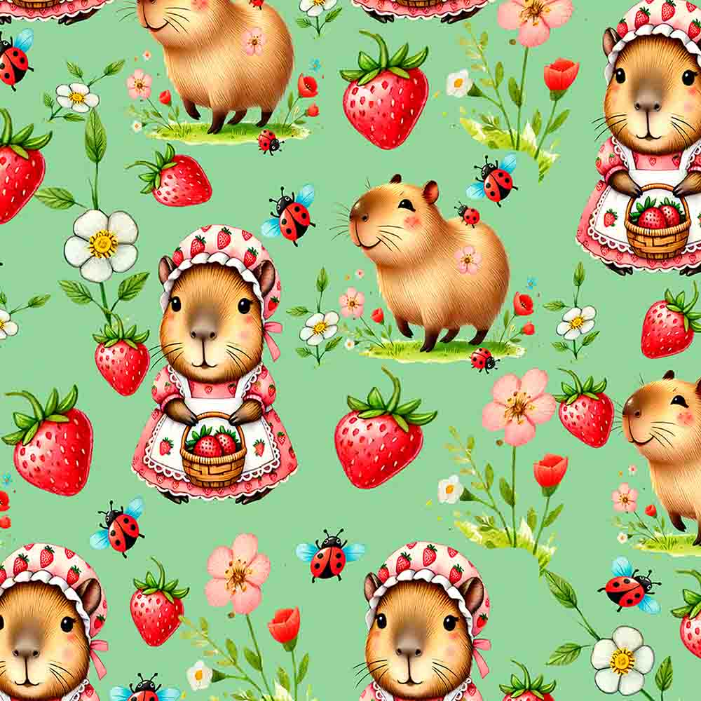TRICOLINE 100% ALGODAO DIGITAL - COLEÇÃO CAPYBARAS - CAPIVARA E MORANGO 00134/001