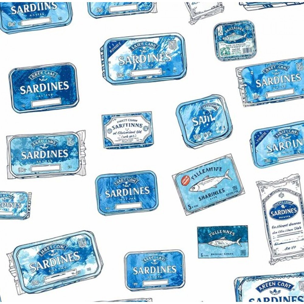 NV25 - TRICOLINE - COLEÇÃO SARDINHAS - LATAS DE SARDINHAS AZUIS - 100% ALGODÃO - A0251-001
