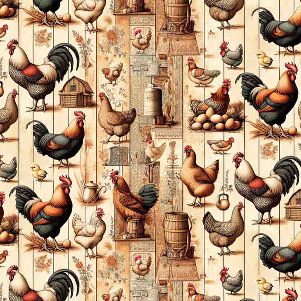 COLEÇÃO COUNTRY LIFE - TRIC. EST. DIGITAL - GALOS VERDE / FD BEGE 90469-01