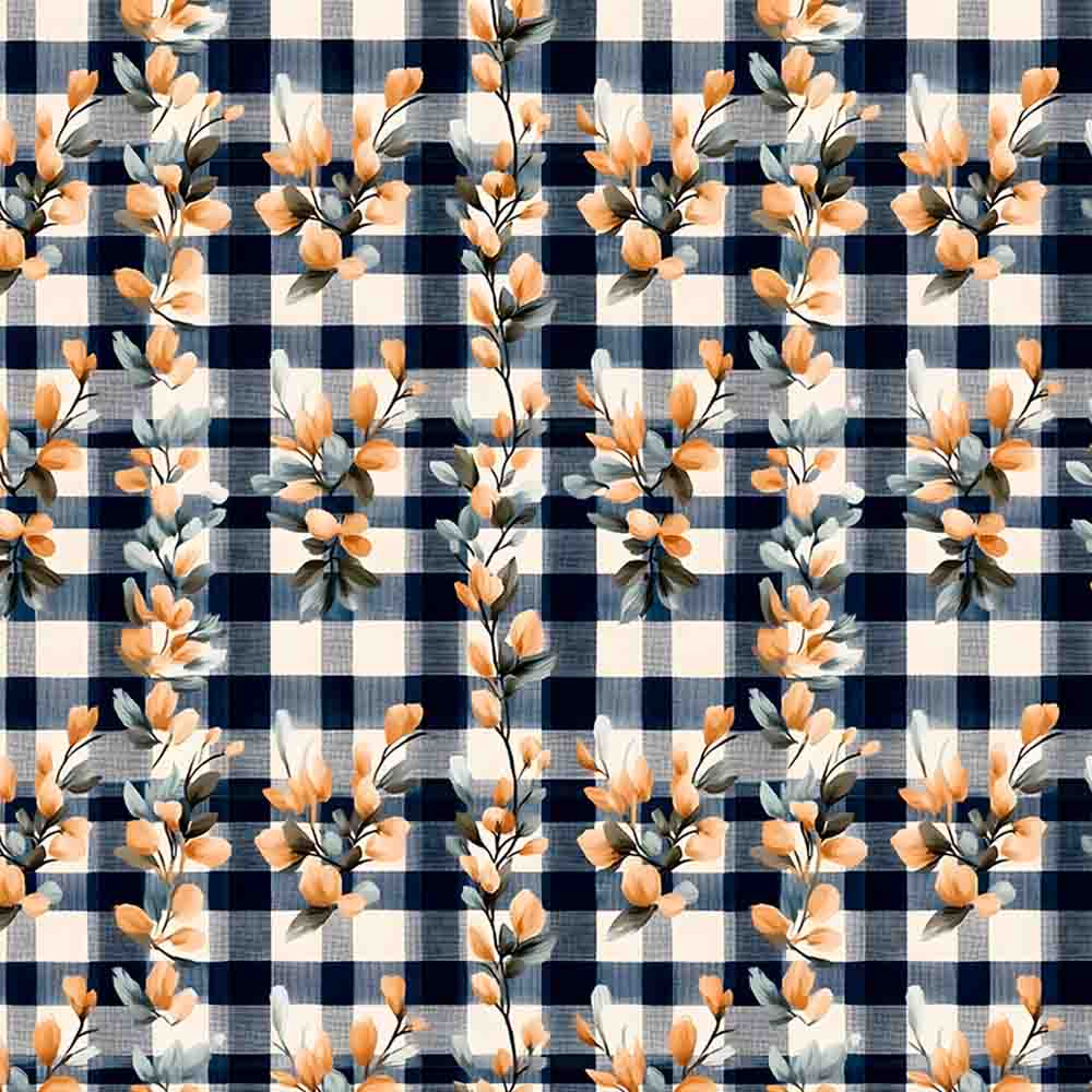 COLEÇÃO ORANGE NAVY - TRIC. EST. DIGITAL - FLORAL COM XADREZ - 92124-001